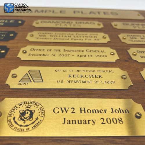 Engraving plates are the perfect way to personalize and complete the look of any award or plaque. We offer a variety of colors, sizes, and styles which can be customized to suit your needs.