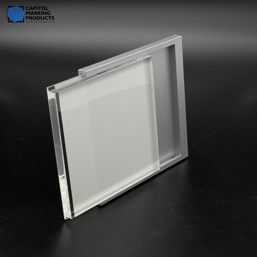 - Materials: Beveled Acrylic "Holder" with a clear Acrylic "Drop-in" Insert